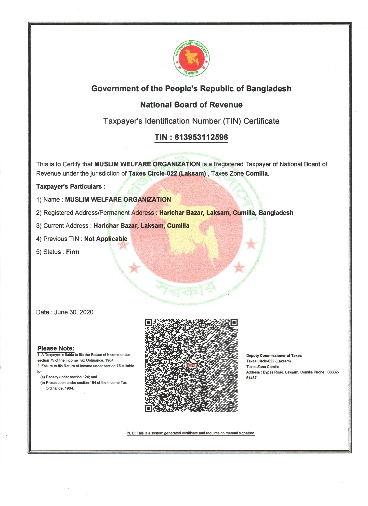 TIN Certificate of MWO